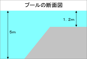 下図のように深いところと浅いところの差が非常に大きいプールがあります。![]() |