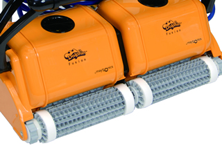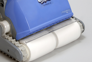ご使用のプールロボットにはブラッシング機能がついていますでしょうか?ブラシのあるなしは、見た目以上に汚れを落とす能力に大きな差が出来ます。ブラッシング機能のない吸込みだけのプールロボットは沈んでいるゴミは吸い取れますが、底に張り付いたぬめりや藻を取り除くことは出来ません。汚れの付いた表面を満遍なくブラシでこするということが掃除には欠かせない行為です。