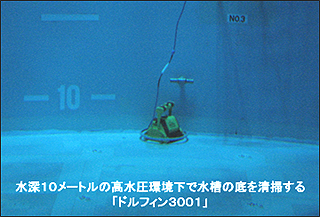飛び込み用・潜水用プール(水深5m以上15mまで) 水深10m以上のプールでは稼動できるプールロボットは限られてきます。 「ドルフィン 3001」は1994年JAXA(宇宙航空研究開発機構)での水深10m水槽清掃試験に合格した唯一のプールロボットで、導入以降使い続けられています。。![]() |
