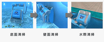 ほとんどのプールの底面は一見フラットなように見えて水深の深い浅いの違いがあり全くの平面ではありません。傾斜がある部分をプールロボットが通過するときには少なからずその影響を受け、本来向うべき軌道がズレてしまいます。
